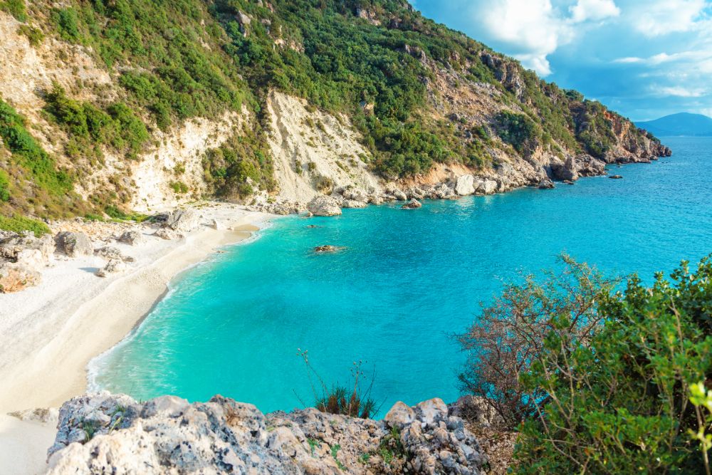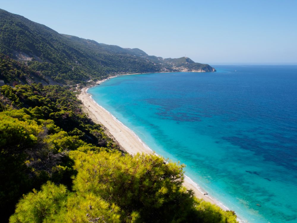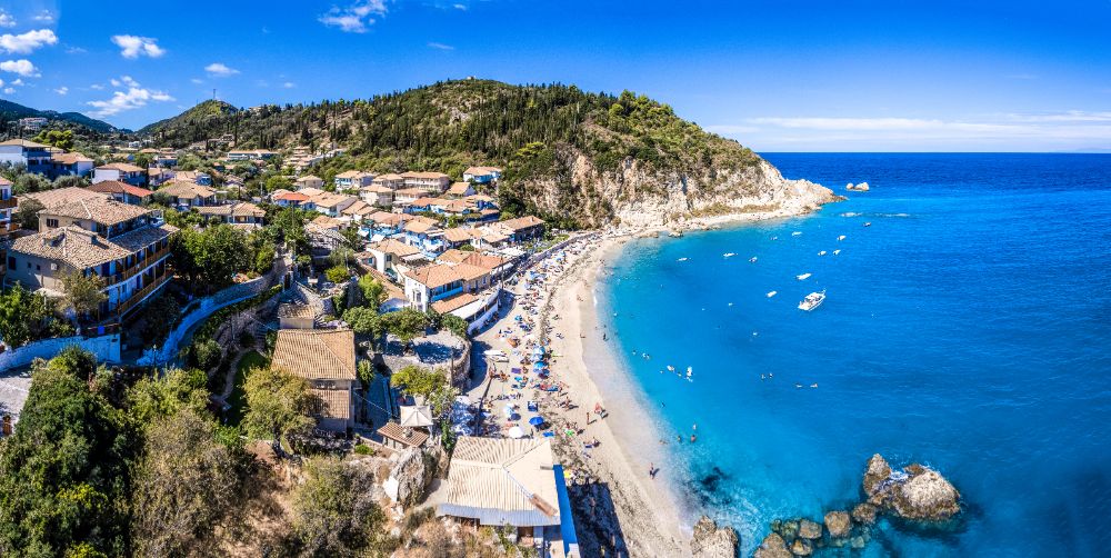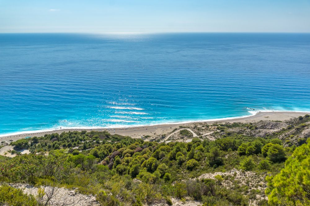 Egremni is a long sandy beach with fine pebbles, exotic beauty, and ambiance. It is another impressive and magnificent beach in Greece. Ideal for a dream vacation. There, you will find sunbeds, umbrellas, and cafes.