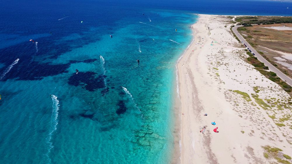 Kathisma has a cosmopolitan aura. It is a long sandy beach and a popular destination for tourists yearning to enjoy various water activities and sports. This beach is well-organized and attracts crowds of all ages. There are plenty of beach bars, taverns, sunbeds, and umbrellas. It is easily accessible by car through the main road of the island, which makes it very convenient.